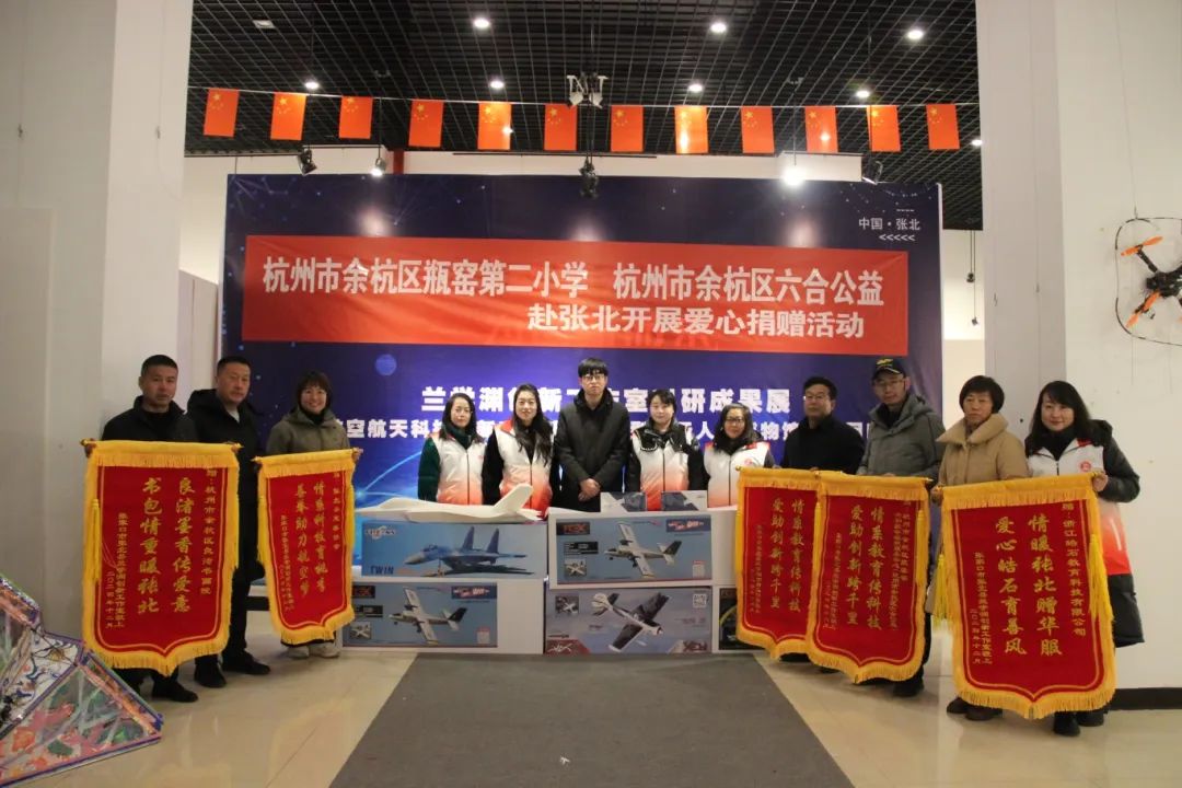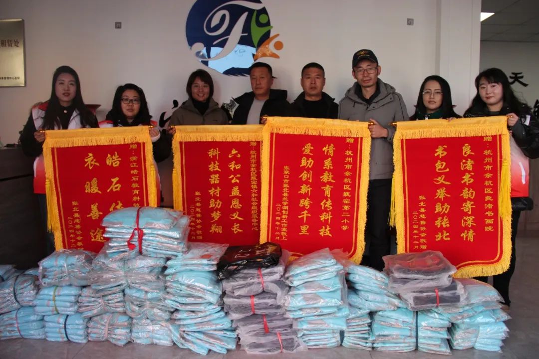 杭州市余杭區(qū)瓶窯第二小學(xué)聯(lián)合余杭區(qū)六合公益,向張北縣慈善協(xié)會捐贈(zèng)了價(jià)值35000元的飛行模型器材;浙江皓石教育科技有限公司為張北縣慈善協(xié)會捐贈(zèng)了170套服裝;杭州市余杭區(qū)良渚書畫院向張北縣慈善協(xié)會捐贈(zèng)了27個(gè)書包。