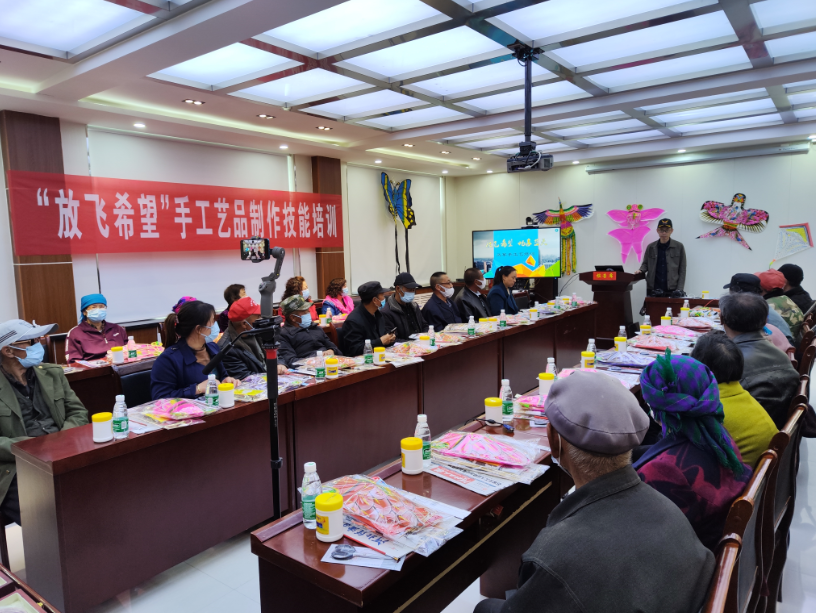 在5月15全國(guó)助殘日這一天,在饅頭營(yíng)鄉(xiāng)會(huì)議室,希望小鎮(zhèn)項(xiàng)目組聯(lián)合張北縣殘聯(lián)、張北縣殘疾人溫馨家園組織了30多名當(dāng)?shù)亓羰乩先恕埣踩舜迕耖_(kāi)展了“放飛希望 手工藝品制作技能培訓(xùn)”,本次培訓(xùn)一共分為4期,首次培訓(xùn)主要內(nèi)容為“風(fēng)箏制作”,重點(diǎn)針對(duì)傳統(tǒng)風(fēng)箏及娛樂(lè)風(fēng)箏制作工藝進(jìn)行培訓(xùn),培訓(xùn)現(xiàn)場(chǎng)邀請(qǐng)了中國(guó)航空學(xué)會(huì)專家、張北縣政協(xié)委員新聯(lián)會(huì)會(huì)員,剪紙、風(fēng)箏制作專家樹(shù)兒灣小學(xué)“蘭學(xué)淵老師”進(jìn)行了專業(yè)講解及培訓(xùn),確保每一位學(xué)員掌握風(fēng)箏的制作工藝。